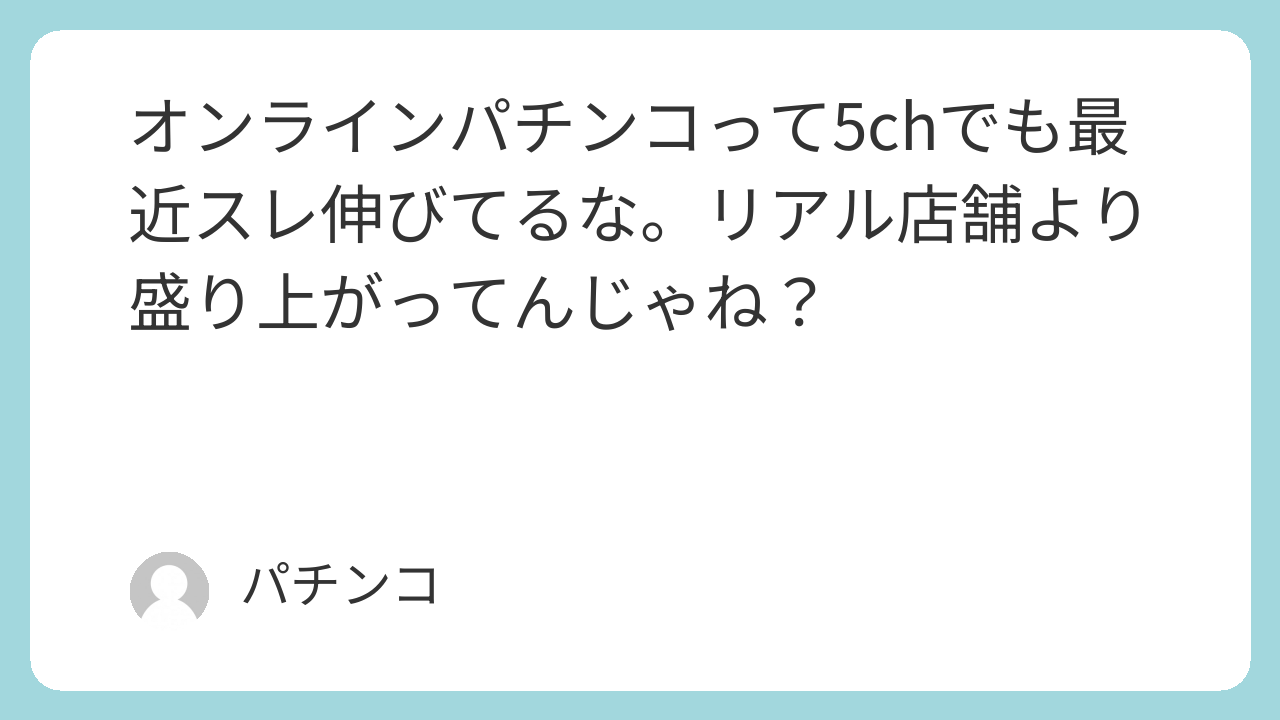 オンラインパチンコって5chでも最近スレ伸びてるな。リアル店舗より盛り上がってんじゃね?