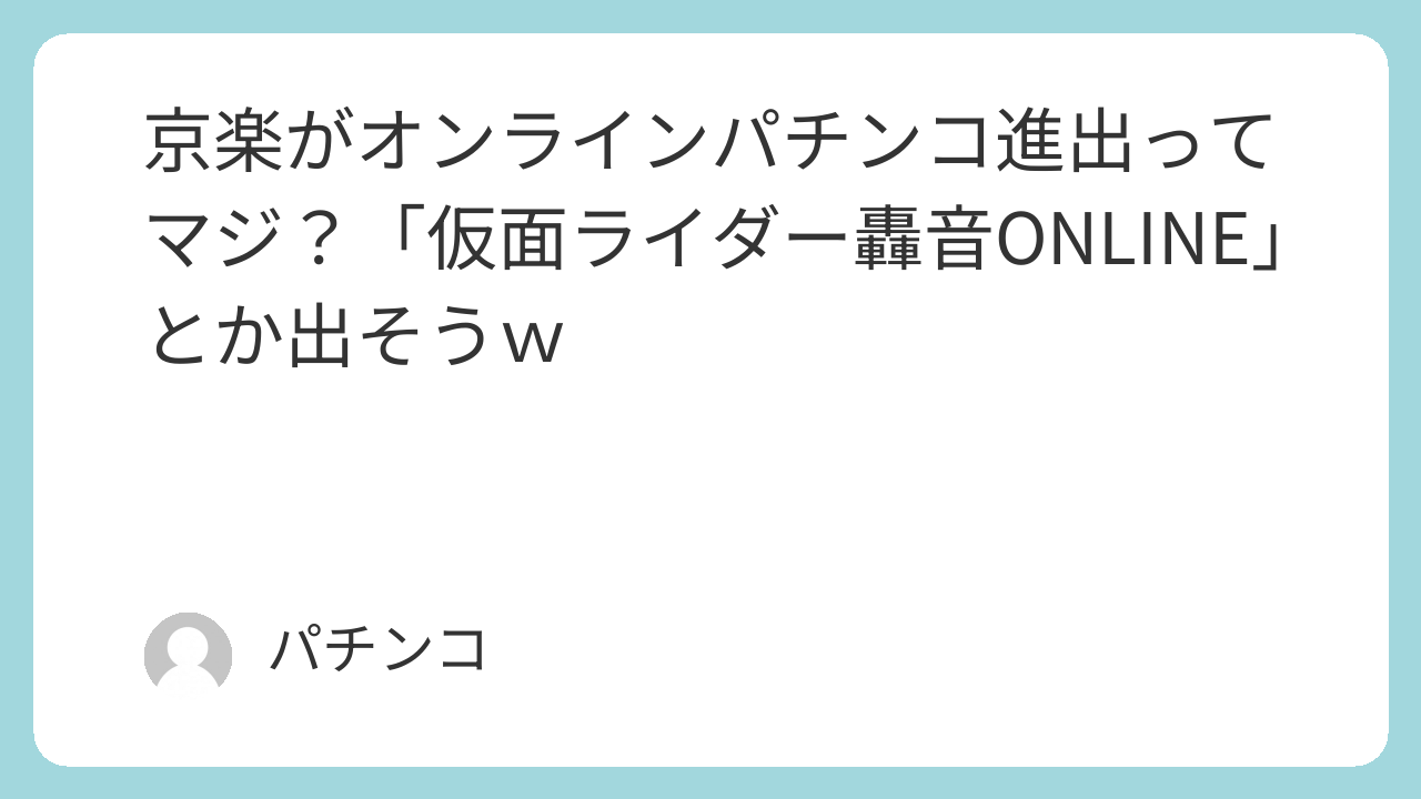 京楽がオンラインパチンコ進出ってマジ?「仮面ライダー轟音ONLINE」とか出そうw
