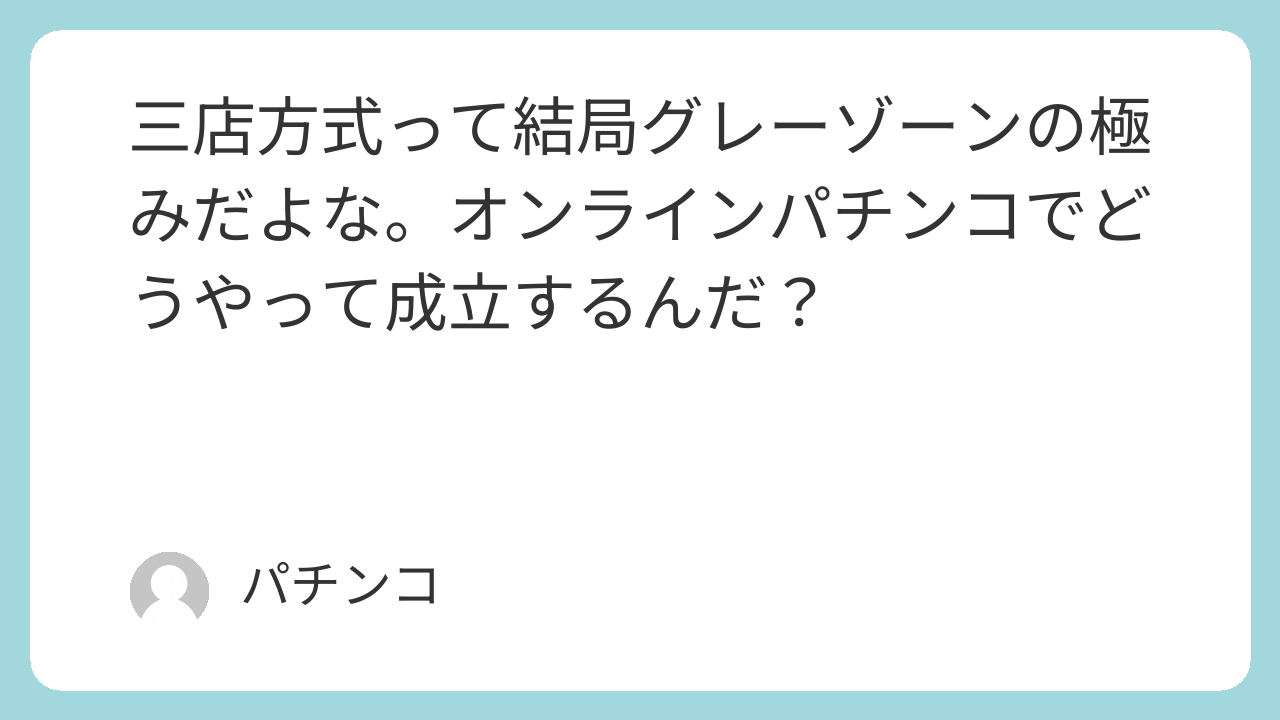 三店方式って結局グレーゾーンの極みだよな。オンラインパチンコでどうやって成立するんだ?