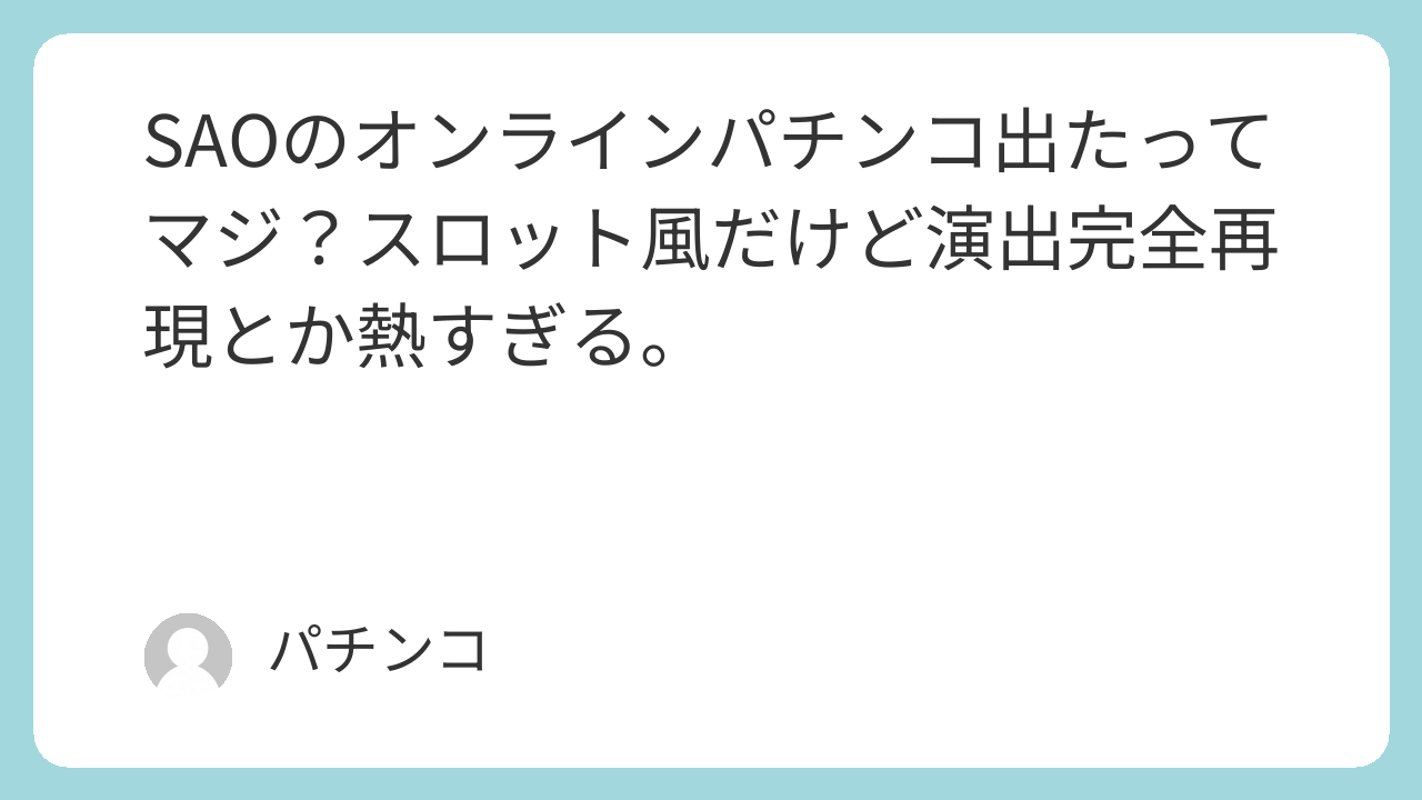 SAOってパチンコにするには題材重すぎるよな。デスゲームなのに当たり引けないの皮肉。
