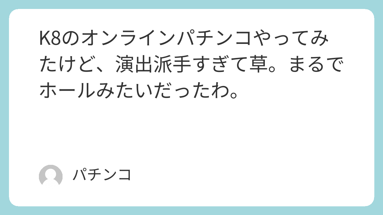 K8のオンラインパチンコやってみたけど、演出派手すぎて草。まるでホールみたいだったわ。
