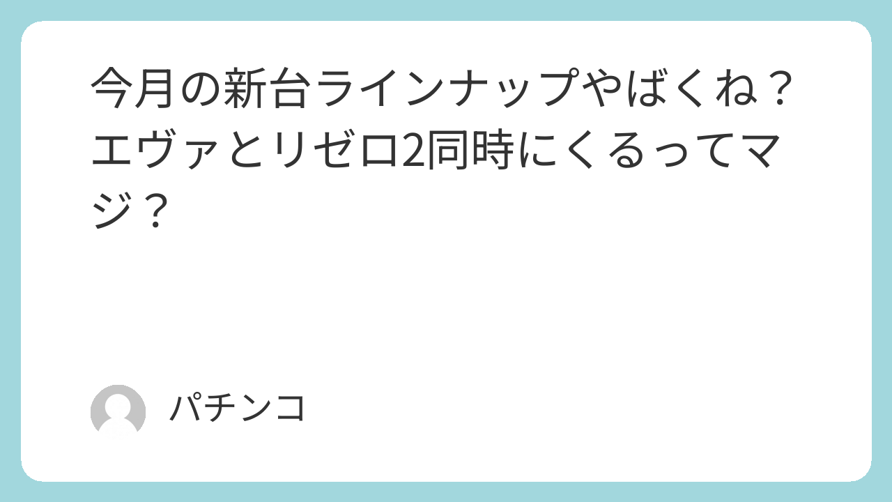 今月の新台ラインナップやばくね?エヴァとリゼロ2同時にくるってマジ?
