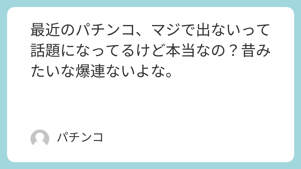 最近のパチンコ、マジで出ないって話題になってるけど本当なの?昔みたいな爆連ないよな。
