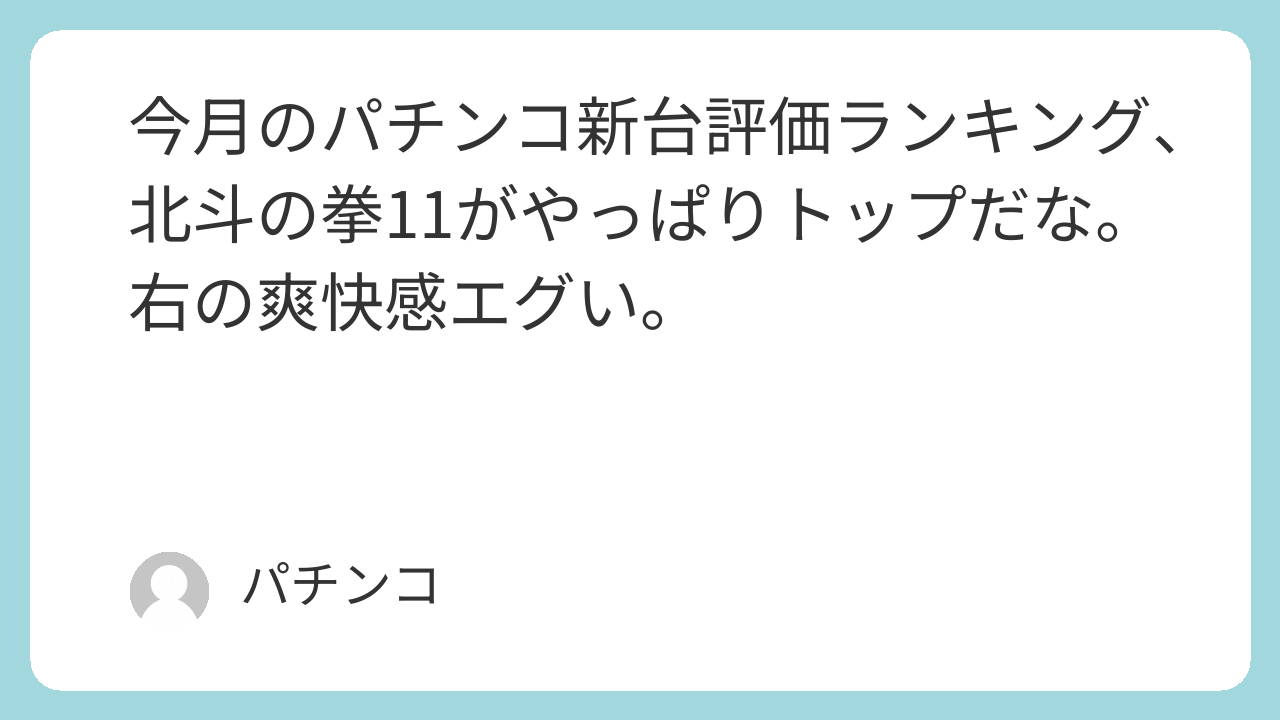 今月のパチンコ新台評価ランキング、北斗の拳11がやっぱりトップだな。右の爽快感エグい。